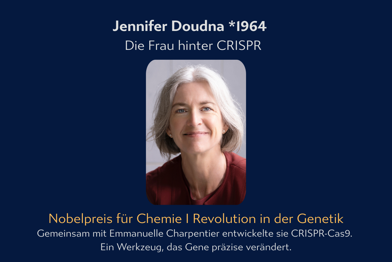 Ihre Arbeit galt lange Zeit als hochspezialisiert – bis sie gemeinsam mit der französischen Mikrobiologin Emmanuelle Charpentier eine Entdeckung machte, die die moderne Biologie revolutionieren sollte. Im Jahr 2012 gelang es Doudna und Charpentier, das CRISPR-Cas9-System als präzises Werkzeug zur gezielten Veränderung von DNA zu beschreiben. Diese Methode erlaubt es, Gene einfacher, schneller und günstiger zu verändern als je zuvor.